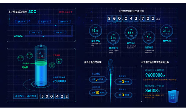 为学校提供学生知识点掌握度,词汇量,答题时间,专注度等多个维度指标。提供班级错题纠正率,知识点增长率,词汇量提升数,作业效率等指标。提供全校学生学情大屏,成绩分布排行,月考成绩曲线,知识 点掌握度,错题纠正曲线,作业完成情况图等。作业统计大屏,作业题量,错题量,易错知识点,累计推题数,学科预警等。