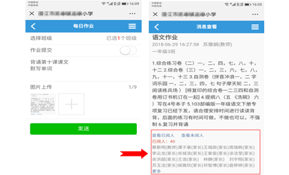 移动端发送消息便捷及时,一键群发,精准推送,减少老师工作负担,提高老师工作效率。还可以及时掌握家长消息阅读情况,随时查看一目了然。